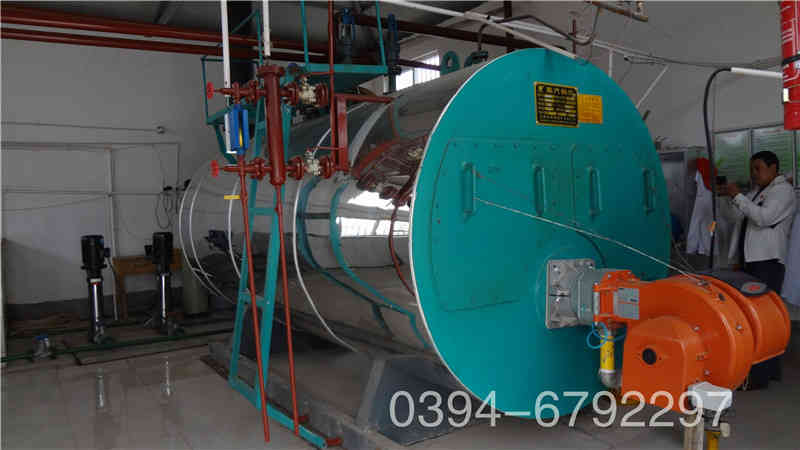 WNS系列蒸汽锅炉是锅壳式、波形炉胆、螺纹烟管型节能锅炉,采用三回程湿背式结构,燃料在炉胆内燃烧产生高温烟气,经回燃室→对流管束→前烟箱→第二对流管束→后烟箱→常压冷凝器→烟囱排入大气。炉胆在设计中采用波形炉胆,能较好的与火焰形状相适应,保证了燃烧充分,波形炉胆降低了炉胆刚性,减小了变形应力,可保证制造质量。同时在回燃室安装了检查孔或弹簧式防爆检查门,本体上设置的人孔有利于锅炉的安全运行及维修。锅炉安全控制严格按照NB/T47034-2013《工业锅炉技术条件》和有关规程规定执行。